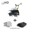 o segredinho sujo dos grandes jardineiros! deixe para trás o trabalho árduo de cultivar grama dura e abra terreno com o poderoso cultivador sem fio de 24 volts* da Sun Joe!