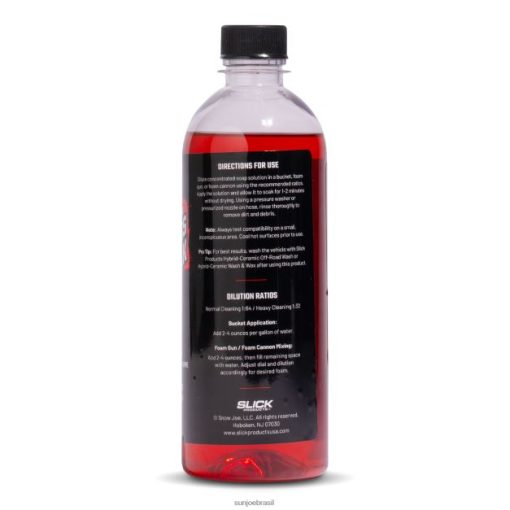 produtos lisos, a pré-imersão superconcentrada e sem toque penetra, suaviza e solta lama, sujeira, insetos e fuligem das superfícies. esta solução de espuma de baixa densidade é melhor usada como tratamento de pré-lavagem nas superfícies externas dos veículos. a solução concentrada deve ser diluída antes do uso e é adequada para aplicação com canhão de espuma ou pistola de espuma. contém um aroma fresco de melancia.
